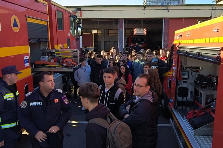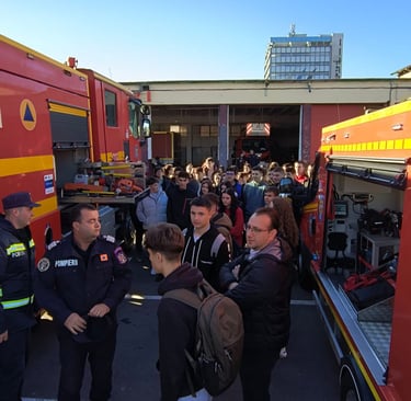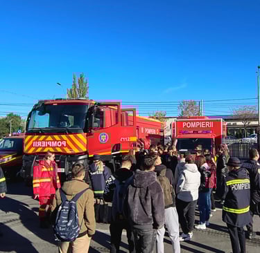 🚒 O altă activitate de impact a fost vizita elevilor claselor a IX-a FB și a XII-a FB la Inspectoratul pentru Situații de Urgență „Basarab I” Dâmbovița, unde elevii au descoperit misiunile zilnice ale pompierilor și importanța spiritului civic, a curajului și a solidarității în slujba semenilor. Vizita s-a desfășurat într-un cadru educativ, cu demonstrații practice și prezentări de echipamente, fiind o experiență memorabilă pentru toți participanții.