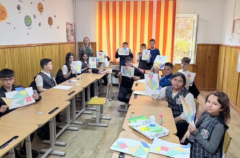 Elevii clasei a VII-a, coordonați de prof. Vișan Mihaela și prof. Cristinescu Mădălina, au îmbinat matematica și arta în cadrul unei activități creative de realizare a animalelor din Tangram. Cu multă imaginație, copiii au demonstrat că geometria poate deveni o joacă plină de culoare și inspirație.
