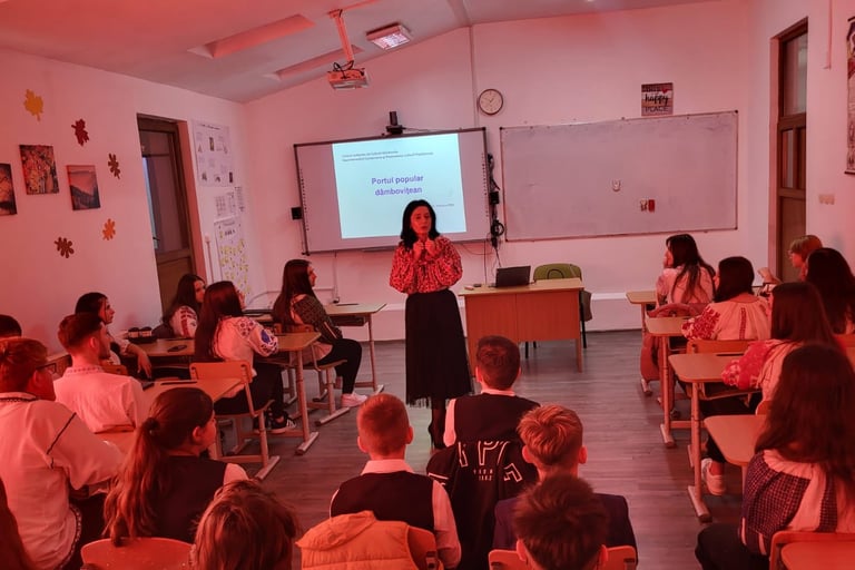 În incinta Seminarului a fost organizat proiectul educațional „Satul dâmbovițean – tradiții și obiceiuri populare”, desfășurat în parteneriat cu Centrul Cultural Județean Dâmbovița, reprezentat de doamna dr. Adriana Ion. Tema zilei, „Costumul popular dâmbovițean”, a urmărit cultivarea respectului față de patrimoniul cultural local, promovarea valorilor artistice ale satului tradițional și redescoperirea autenticității românești. La activitate au participat elevii claselor a X-a Filologie, a XII-a Seminar și a V-a, sub coordonarea prof. Luminița Miloiu, alături de prof. Pleșa Liana, Ioana Alina și Milea Alexandra.