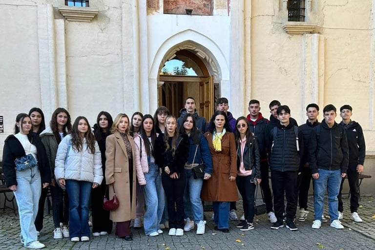 🏛️ Tot în această zi, alţi elevi de la clasele de Filologie au realizat un itinerar cultural în municipiul Târgoviște, vizitând Muzeul de Istorie și Mănăstirea Stelea – repere emblematice ale orașului și ale patrimoniului spiritual românesc. Activitatea a urmărit cultivarea interesului pentru istorie, artă și tradiție, elevii manifestând curiozitate, implicare și entuziasm.