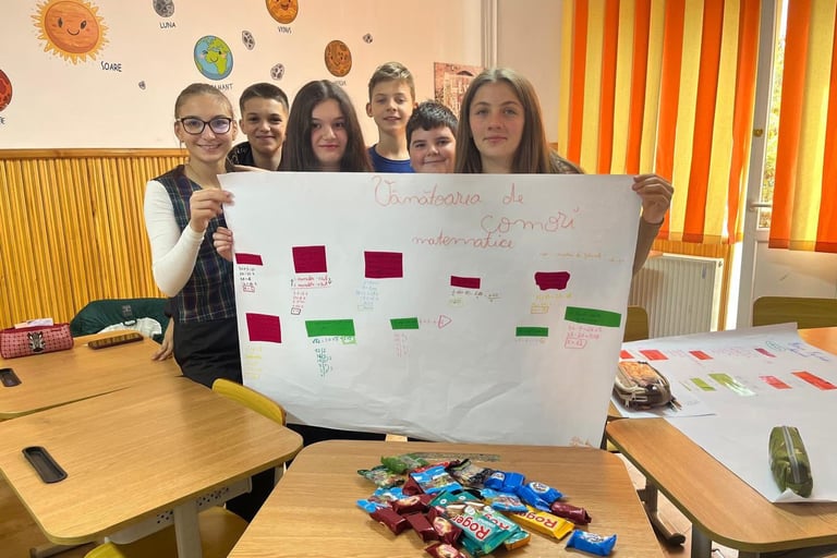Într-o atmosferă veselă, elevii claselor a V-a și a VII-a au luat parte la o „vânătoare de comori matematice”, unde au rezolvat exerciții și probleme în echipă, fiind recompensați cu dulciuri pentru implicarea lor. Activitatea, coordonată de prof. Vișan Mihaela, a combinat logica, spiritul competitiv și bucuria descoperirii, demonstrând că matematica poate fi nu doar utilă, ci și distractivă.