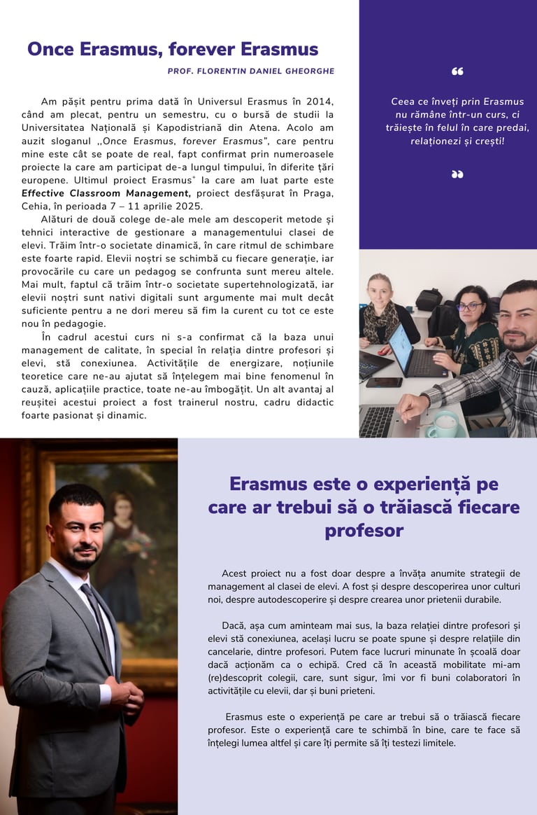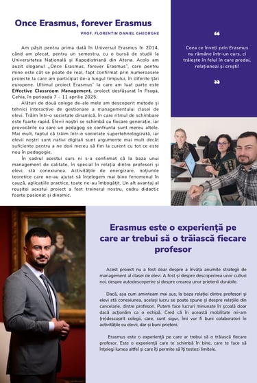 Participarea la această activitate din cadrul acestui proiect Erasmus PROJECT NO.: 2023-1-RO01-KA121-SCH a reprezentat pentru mine o oportunitate deosebită pentru a descoperi perspective inedite asupra modului de predare la clasă și de evaluare a elevilor. Sunt convins că diseminarea informațiilor însușite în cadrul școlii vor avea un impact deosebit asupra colegilor care nu au participat la mobilitate. Nu în ultimul rând, lucrul cu un grup multicultural și practicarea limbii engleze a avut un impact deosebit asupra formării mele. Cursul din programul Erasmus+ al Uniunii Europene mă va ajuta, cu siguranță, să evoluez profesional, cultural, dar şi personal
