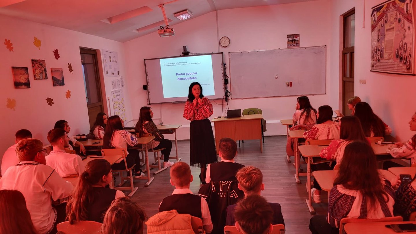 În incinta Seminarului a fost organizat proiectul educațional „Satul dâmbovițean – tradiții și obiceiuri populare”, desfășurat în parteneriat cu Centrul Cultural Județean Dâmbovița, reprezentat de doamna dr. Adriana Ion. Tema zilei, „Costumul popular dâmbovițean”, a urmărit cultivarea respectului față de patrimoniul cultural local, promovarea valorilor artistice ale satului tradițional și redescoperirea autenticității românești. La activitate au participat elevii claselor a X-a Filologie, a XII-a Seminar și a V-a, sub coordonarea prof. Luminița Miloiu, alături de prof. Pleșa Liana, Ioana Alina și Milea Alexandra.