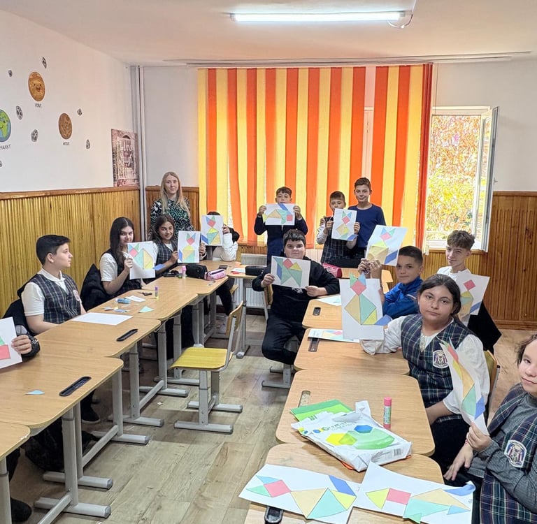 Elevii clasei a VII-a, coordonați de prof. Vișan Mihaela și prof. Cristinescu Mădălina, au îmbinat matematica și arta în cadrul unei activități creative de realizare a animalelor din Tangram. Cu multă imaginație, copiii au demonstrat că geometria poate deveni o joacă plină de culoare și inspirație.