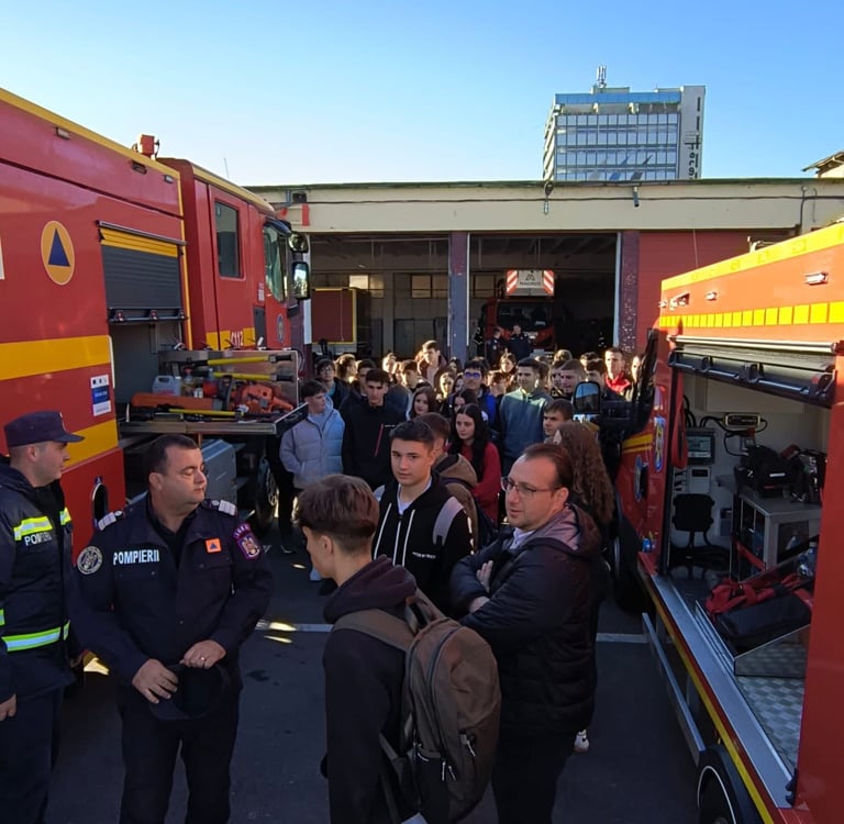 🚒 O altă activitate de impact a fost vizita elevilor claselor a IX-a FB și a XII-a FB la Inspectoratul pentru Situații de Urgență „Basarab I” Dâmbovița, unde elevii au descoperit misiunile zilnice ale pompierilor și importanța spiritului civic, a curajului și a solidarității în slujba semenilor. Vizita s-a desfășurat într-un cadru educativ, cu demonstrații practice și prezentări de echipamente, fiind o experiență memorabilă pentru toți participanții.
